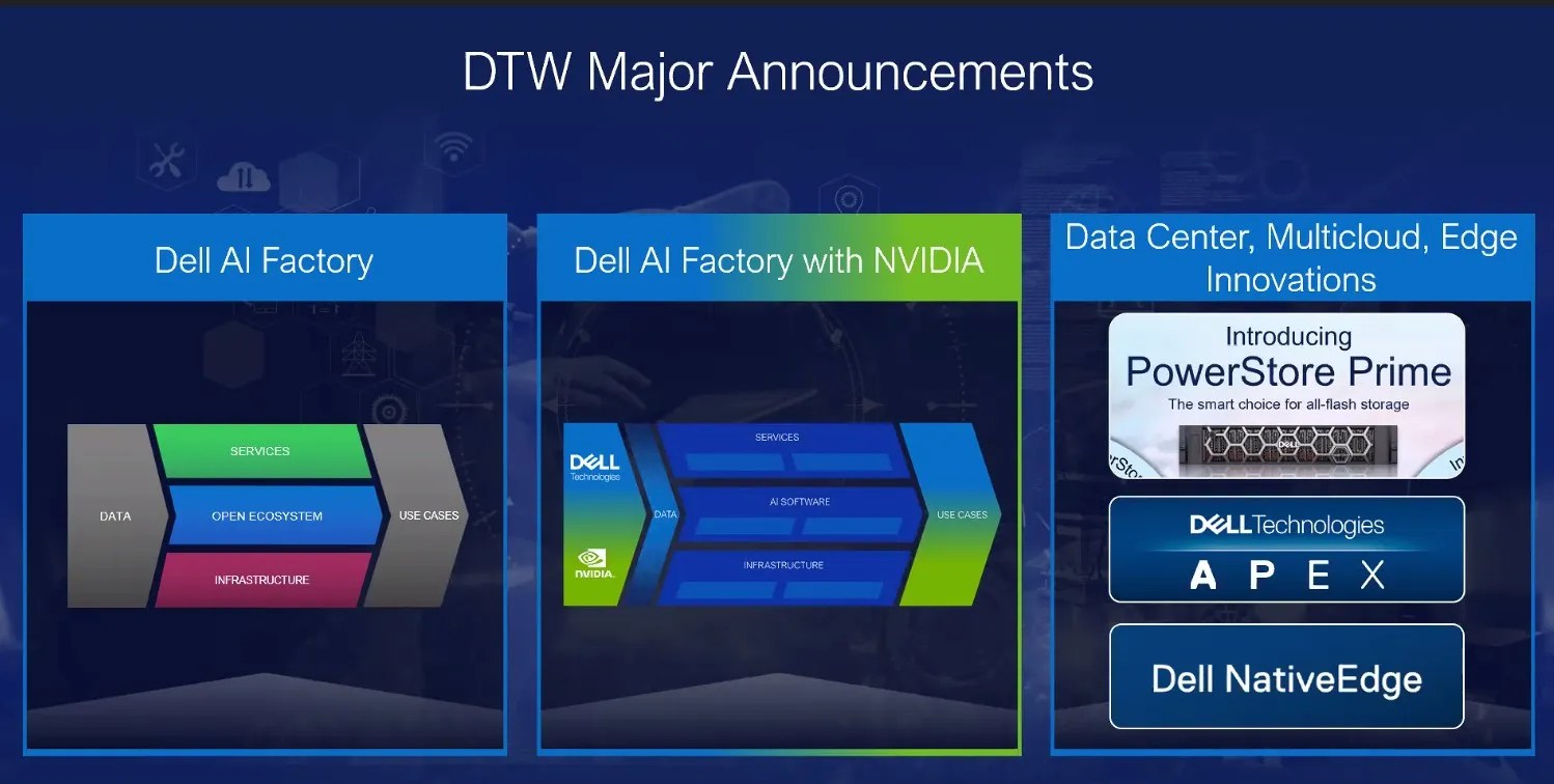 La marca anunció el lanzamiento de AI Factory, su cartera de Inteligencia Artificial para ayudar al ecosistema abierto de socios a crear aplicaciones de IA que cubran necesidades específicas, ya sea a través de una compra tradicional o como una suscripción a Dell APEX.